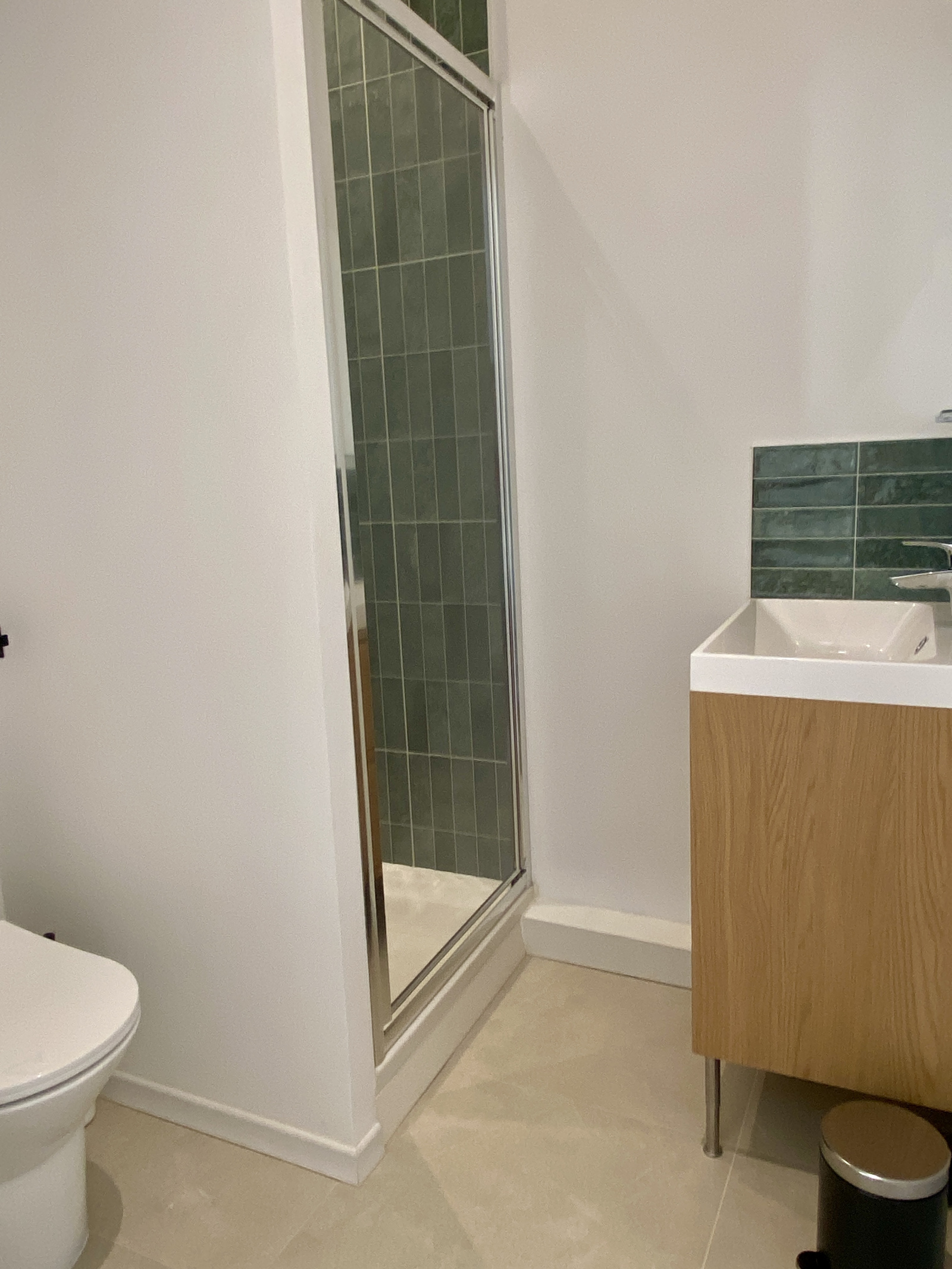 Salle d’eau avec douche, wc et meuble vasque.