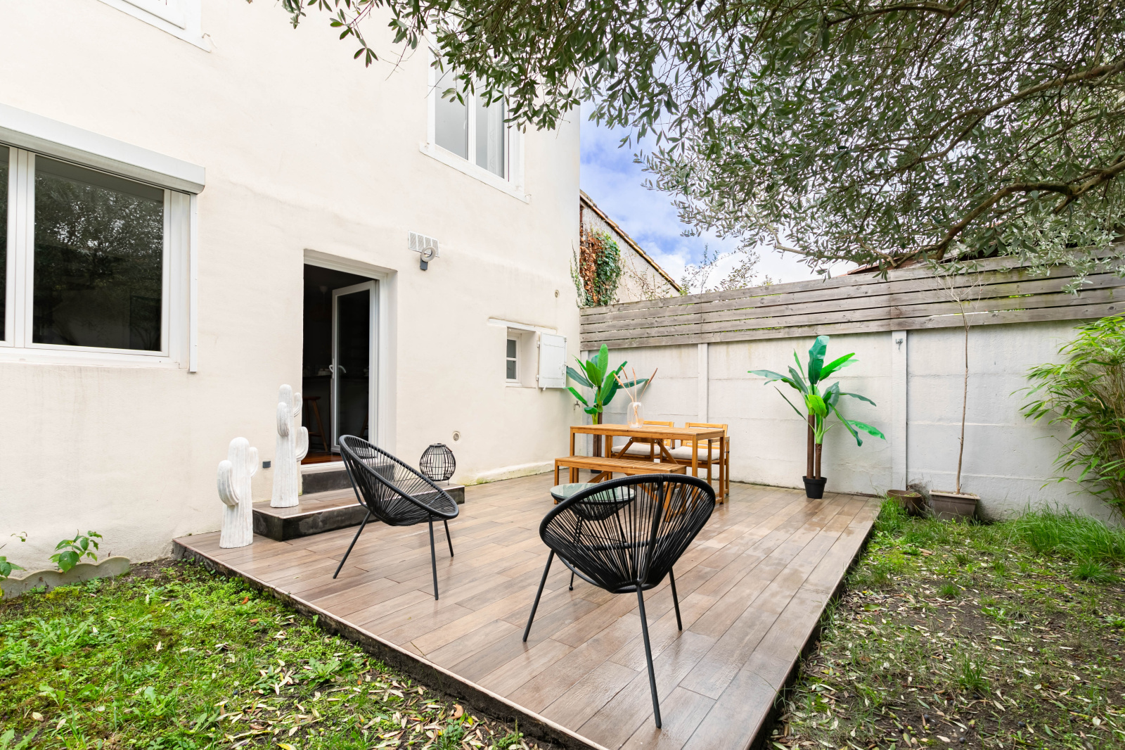 A l'extérieur, jardin agréable de 45 m2 sans vis-à-vis avec terrasse. Possibilité de stationner devant la maison. La toiture et l’isolation des combles ont été refaites à neuf. Aucun travaux à prévoir.