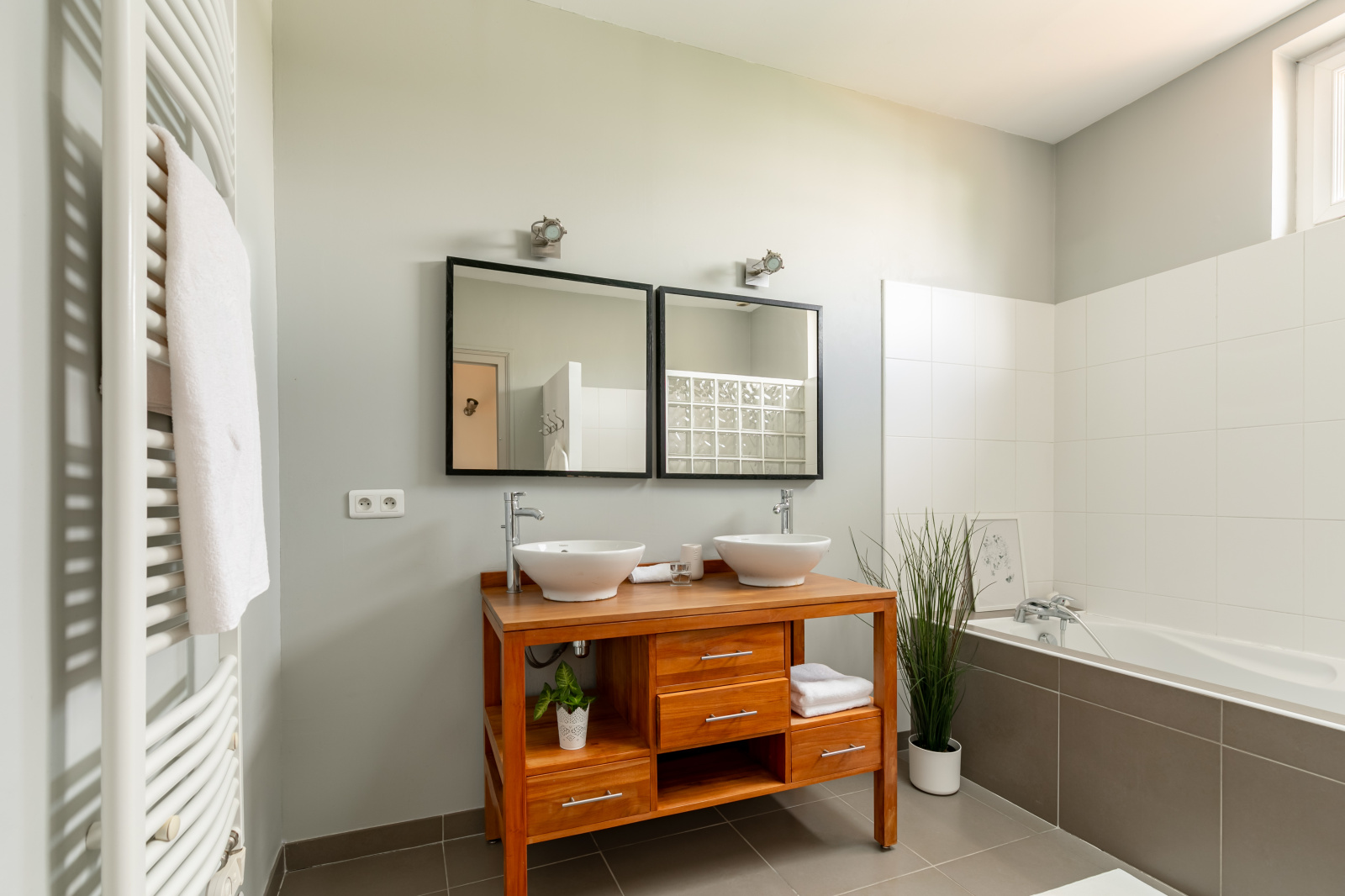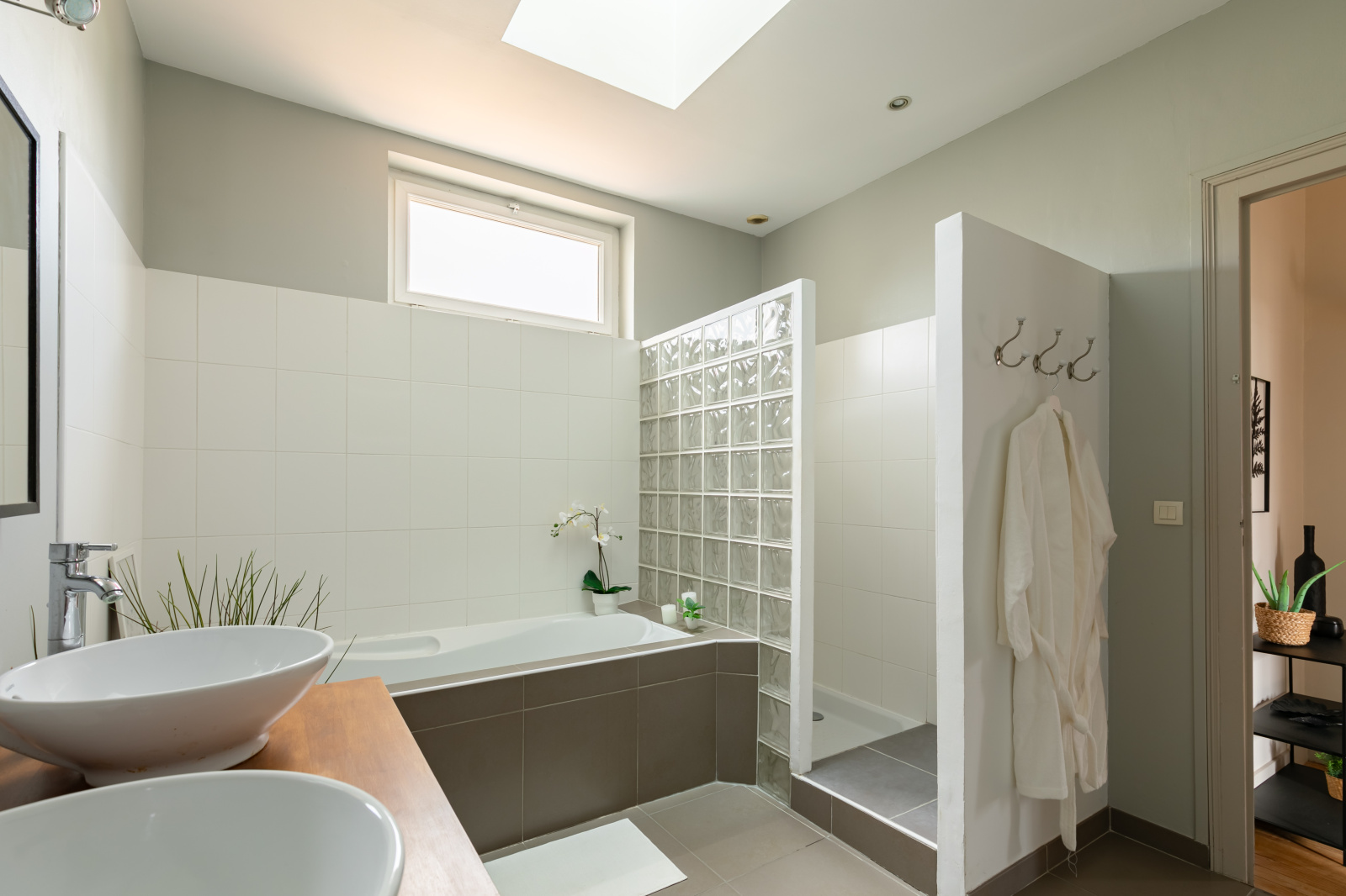 A l'étage, belle hauteur sous-plafond (3m), une chambre parentale de 14 m2 avec dressing, une grande salle de bain avec douche et baignoire, un wc séparé, une seconde chambre de 12 m2 avec sa salle d'eau et une petite chambre de 8 m2.