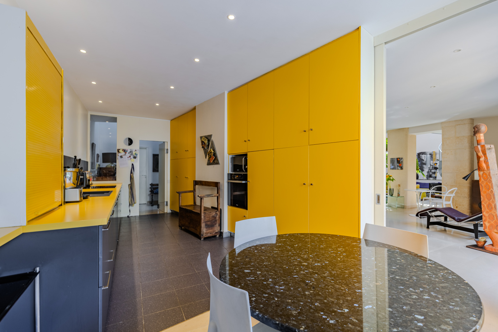 Au rez-de-chaussée, un beau couloir d'entrée mène à la pièce de vie de 86 m2 avec un double salon cathédrale sous verrière avec jardin d'hiver, une cuisine semi séparée de 19 m2, une buanderie et un double garage de 36 m2.