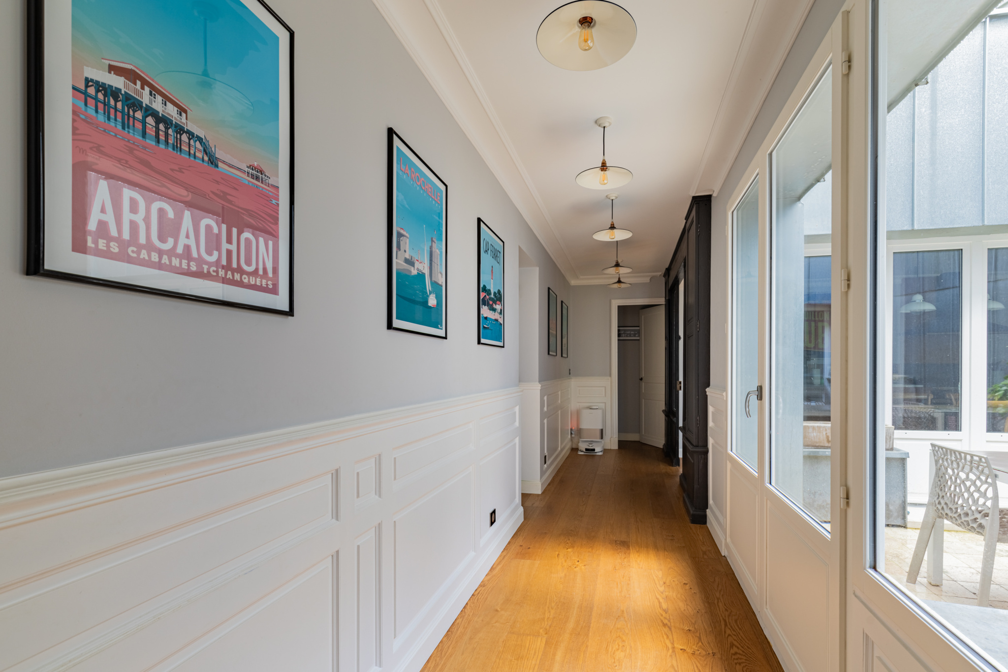 Au rez-de-chaussée, l'entrée indépendante mène à une belle pièce de vie avec espace dînatoire et salon donnant sur deux agréables patios. Un beau couloir prolonge cet espace pour desservir la très belle cuisine équipée de 16 m2, et une suite parentale avec sde. Vous retrouverez également sur ce niveau un coin cellier/buanderie et un WC.