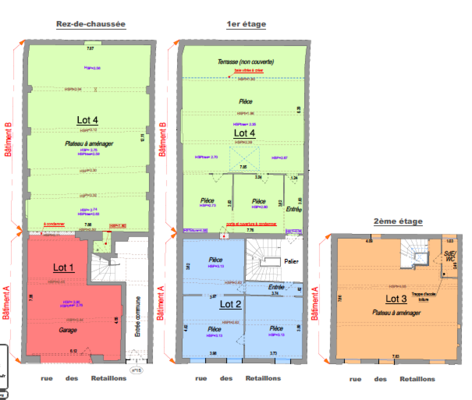 Il est composé de 4 lots sur trois niveaux pour une surface totale de 320 m2 répartis comme suit :