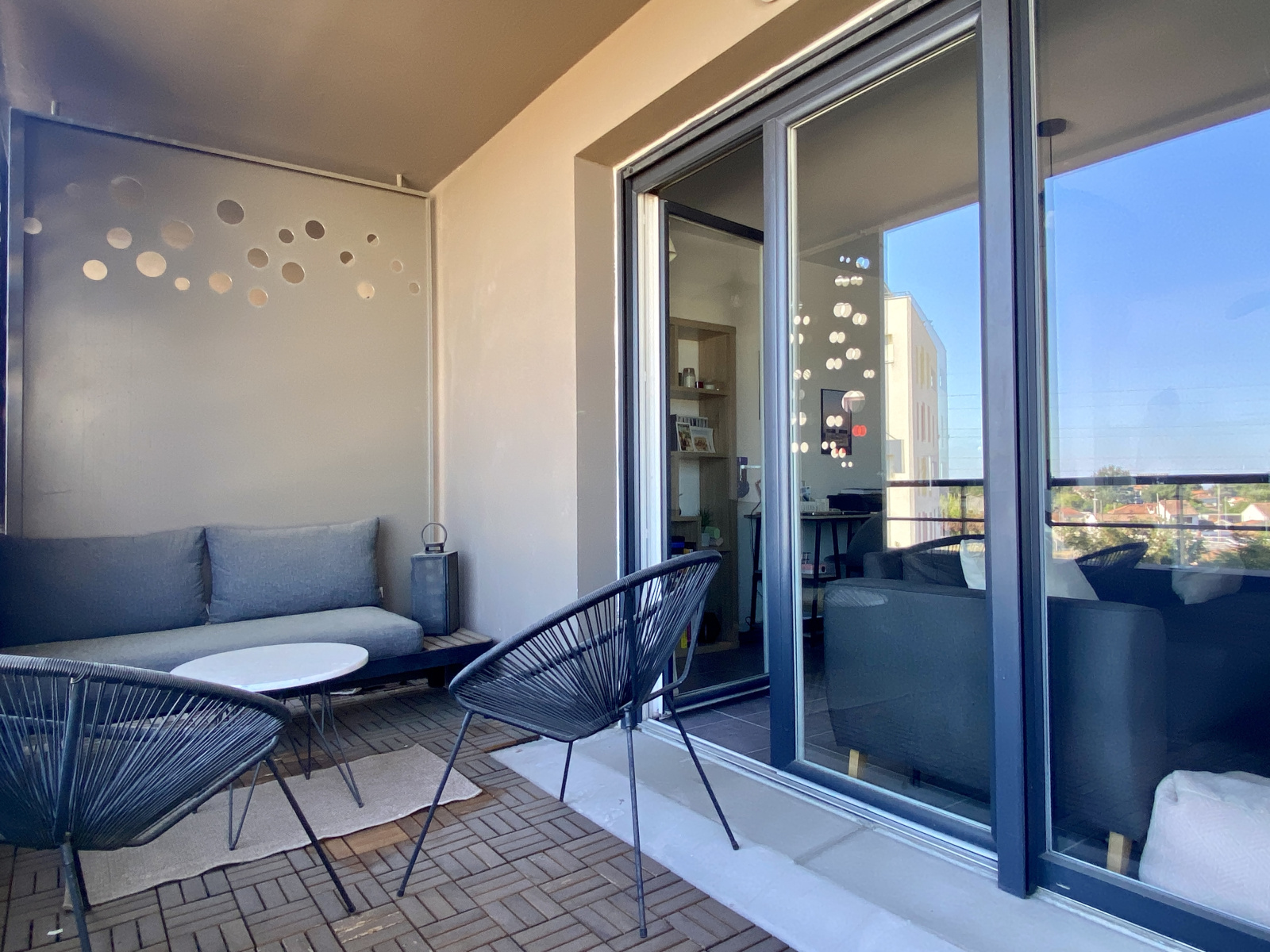 Talence Médoquine côté facultés - Bel appartement T2 de 43 m2 au 3e étage d"une résidence récente de 2018. Entrée indépendante, séjour lumineux de 22 m2 orienté Sud-Est bénéficiant d'un joli balcon avec coin salon. Cuisine équipée avec table ilot et une chambre de 12 m2 avec rangements. Ascenseur et place de parking en sous-sol. Résidence sécurisée. Vue dégagée. Proche des commerces, transports et universités. Dossier complet et visite auprès de M. Marchyllie.