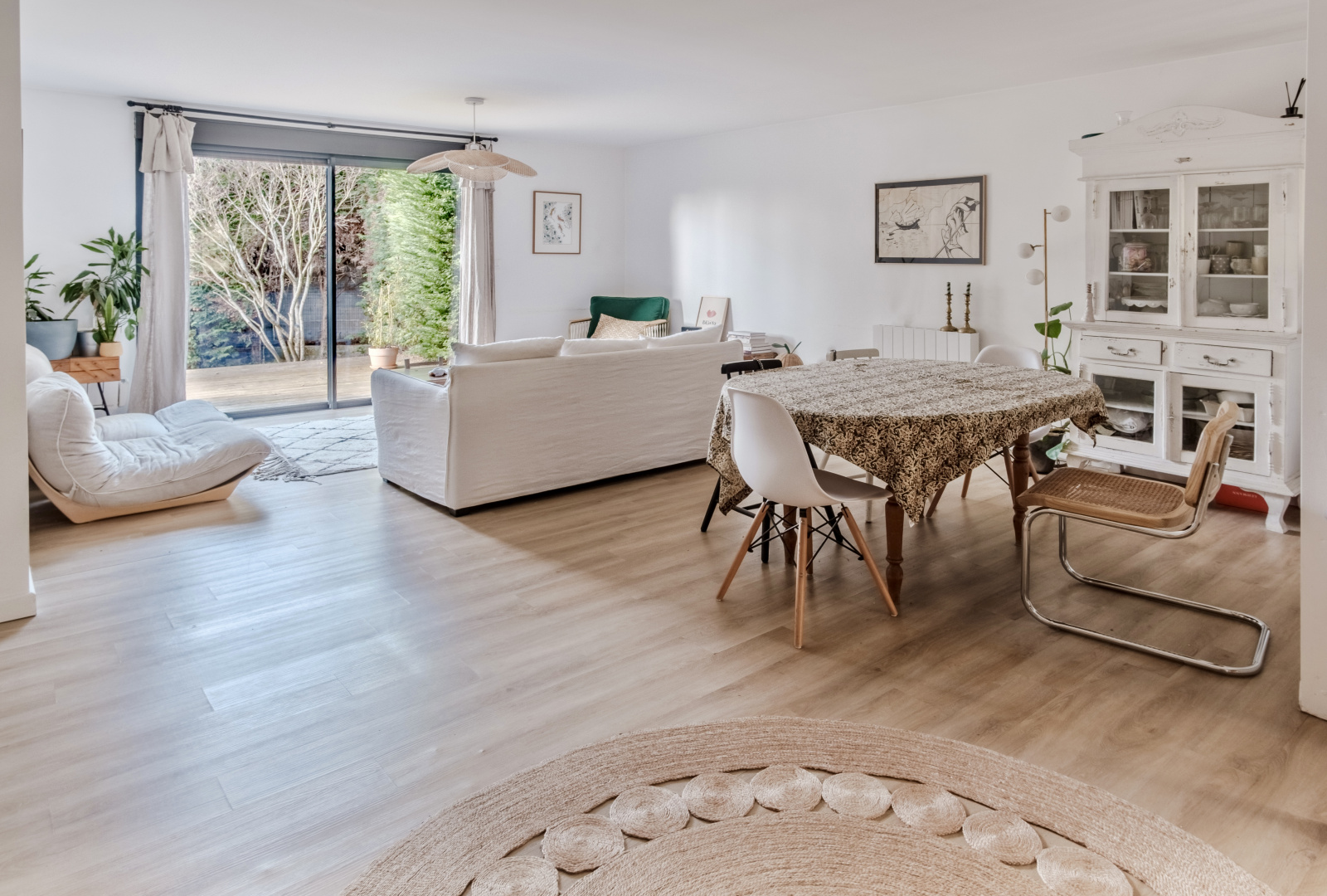 Jolie maison individuelle de 92 m2 dans un quartier calme du bas de Cenon. De plain pied, cette maison propose une pièce de vie lumineuse traversante ouverte sur le jardin et une cuisine semi-séparée par une verrière. L'espace nuit distribue une chambre parentale avec dressing, deux chambres d'enfants, et une salle de bain avec coin buanderie. Jardin d'accueil avec garage de 11 m2 et jardin intimiste sur l'arrière sans vis-à-vis.